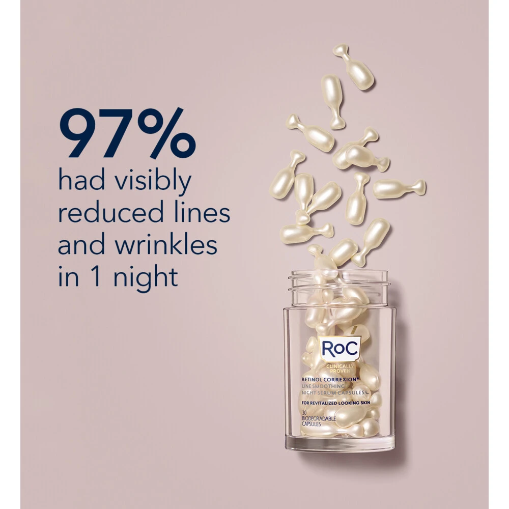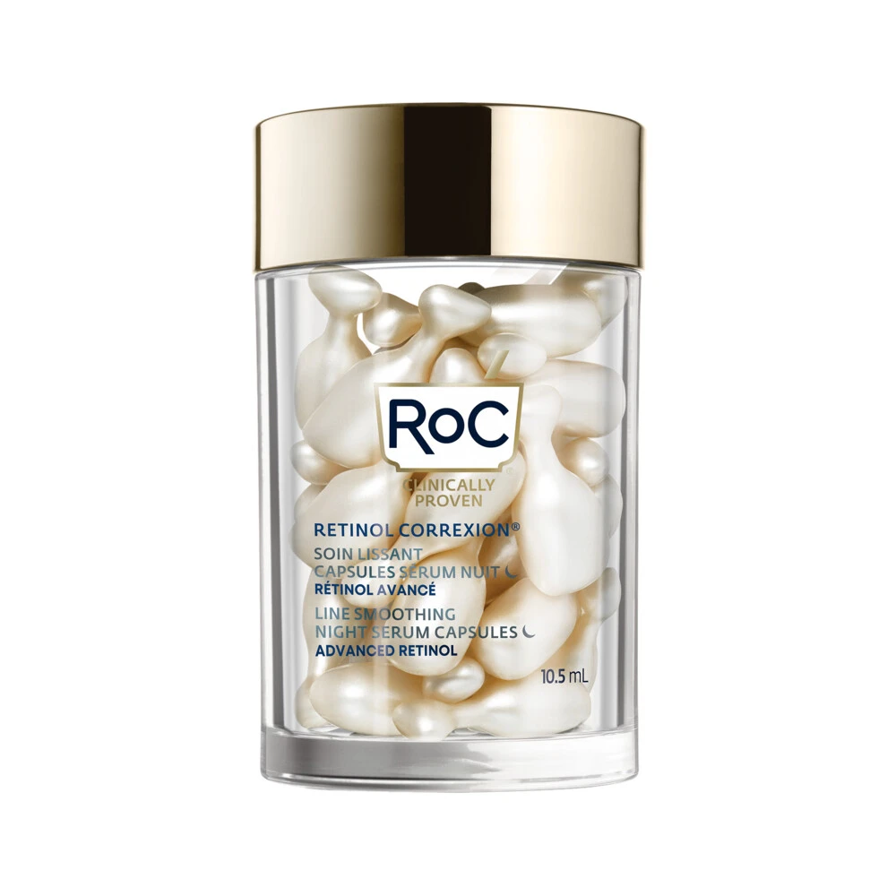 RoC Retinol Correxion Serum NachtOntdek een krachtige nachtelijke vernieuwingsbehandeling in een capsule voor eenmalig gebruik, goed afgesloten voor optimale versheid. De RoC Retinol Correxion Line Smoothing Night Serum Capsules verzachten en verbeteren drastisch het uiterlijk van de collageenarme huid.Gemaakt met pure RoC Retinol + een bio-afgeleide antioxidantElke plantaardige capsule is 100% biologisch afbreekbaarKlinisch bewezenGeurvrijDermatologisch getest
